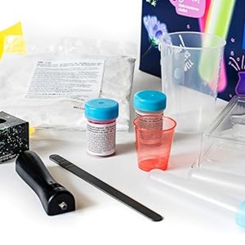 Set boordevol creatieve licht-experimenten met neon-pigmenten. Van lichtgevend straatkrijt, griezelig mooie gipsfiguren tot en met UV-experimenten met huishoudelijke materialen: alles draait om het trendy neon.