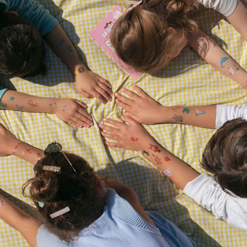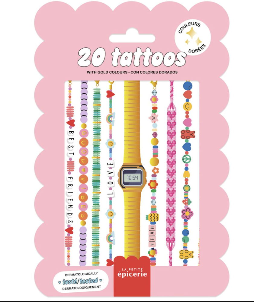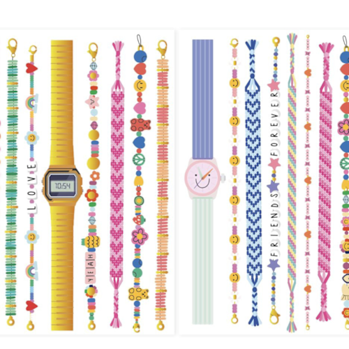 Ontdek deze leuke set tattoos met allemaal verschillende armbandjes (mét goudaccenten) om rond je pols te kleven. Cool, duh?!