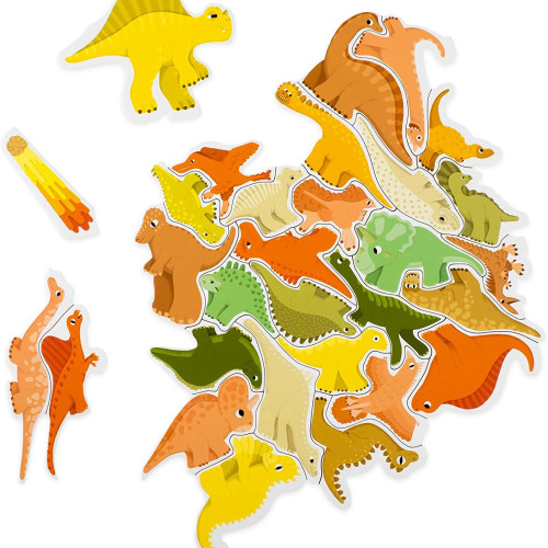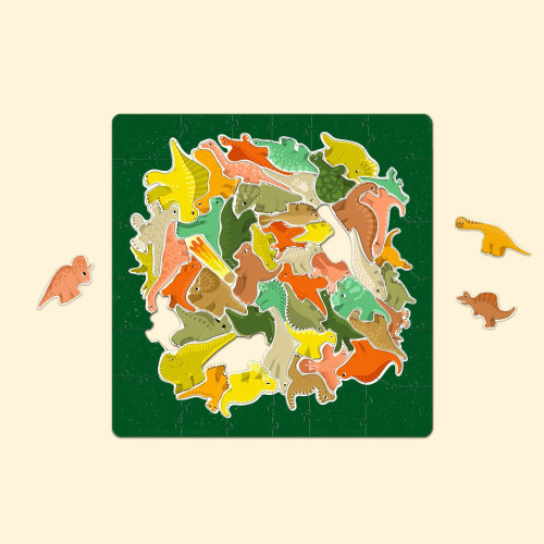 Deze puzzel is een leuke uitdaging voor kleine dinofans! Elk stuk heeft de vorm van een dinosaurus en past perfect langs de poten, staart of nek van 1 van zijn vrienden. Speel tijdens het puzzelen gerust met de stukken op zich, en maak 1 mooi geheel!
