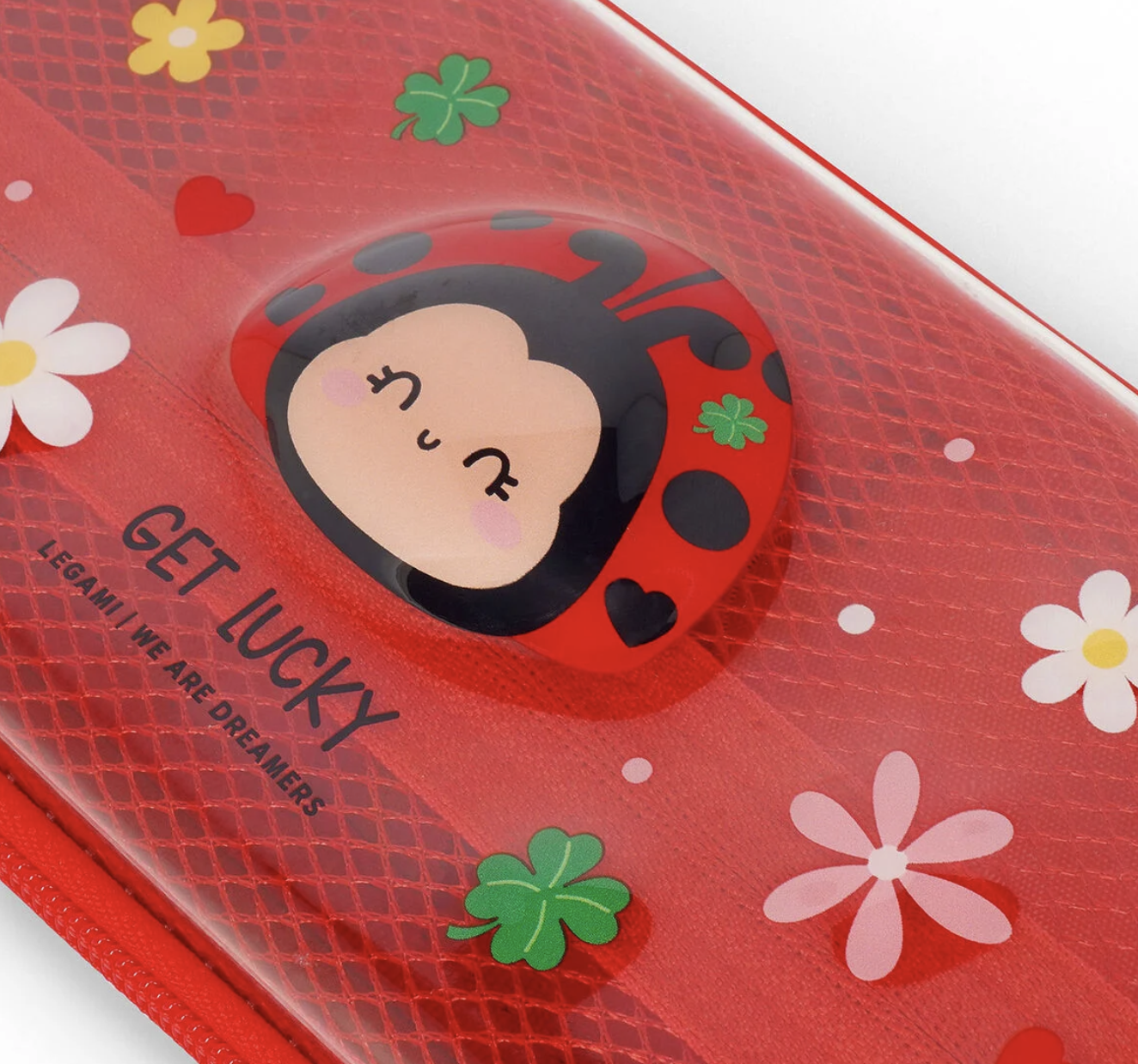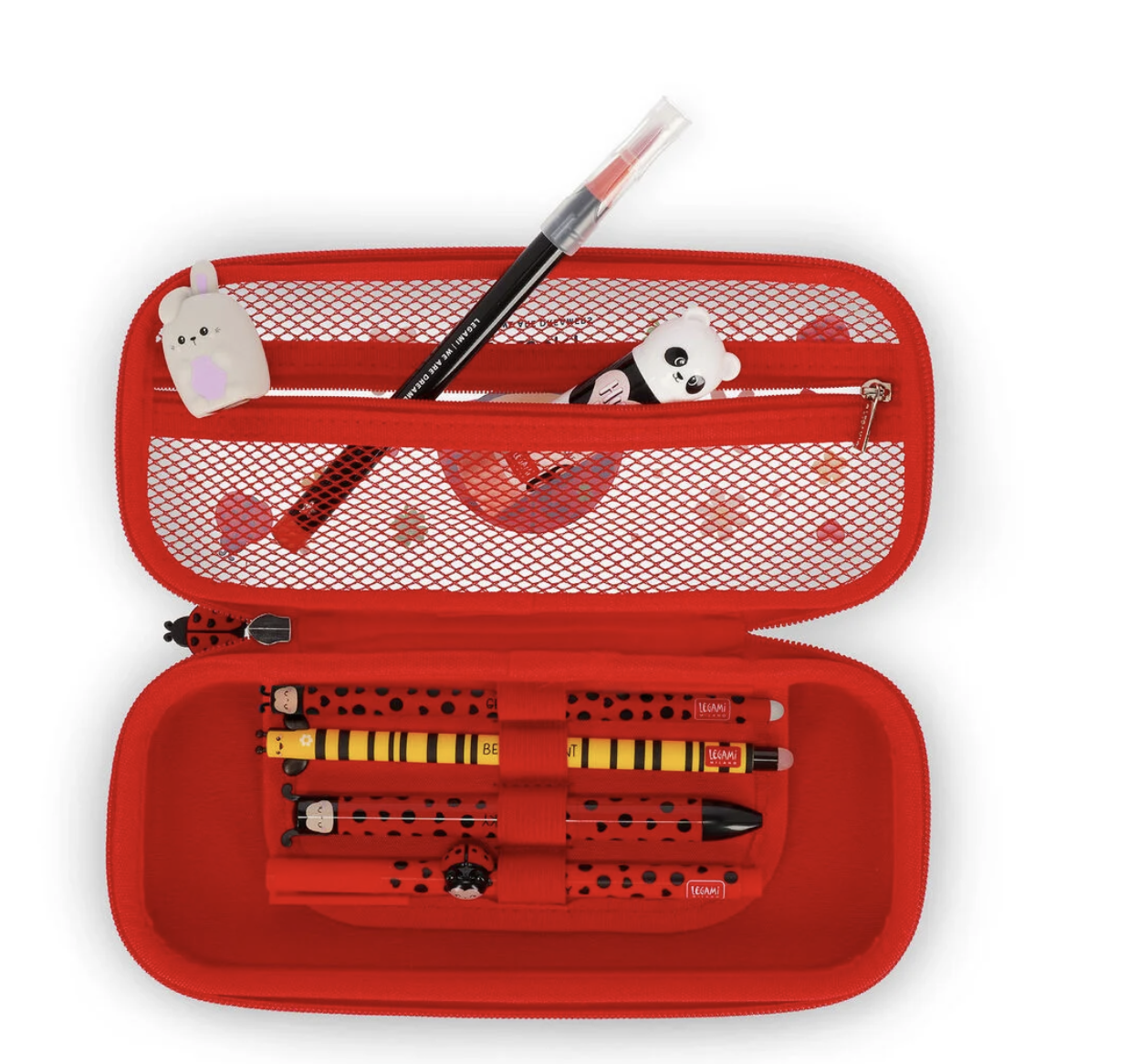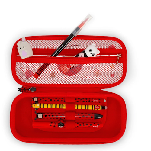 Leuke Legami pennenzak in de gekende Legami figuurtjes. Transparant, met rits en mesh binnenin. Boost your mood ;)