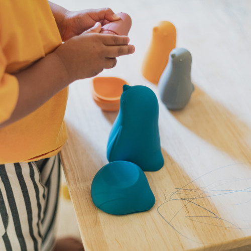 Speciaal ontworpen om baby’s te begeleiden tijdens hun eerste maanden van zintuiglijke ontdekkingen. Gemaakt van food-grade siliconen: zacht, flexibel en veilig. Hun eenvoudige lijnen maken ze tot multifunctioneel speelgoed en nodigen uit tot vrij spel: constructies, symbolische spellen, binnen of buiten, in bad, maken ruimte voor de creativiteit en fantasie van de kleintjes! Ze zijn gemakkelijk af te wassen in heet water of in de vaatwasser voor uren speelplezier!