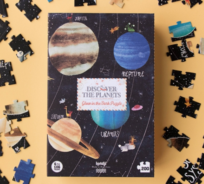 Van Venus naar Mars, van de Aarde tot aan Jupiter..Ontdek de ruimte spelenderwijs met deze knappe, educatieve puzzel. En vergeet nadien het licht niet uit te doen want de planeten van deze puzzel geven licht in het donker! Hoe cool is dat? :-)
