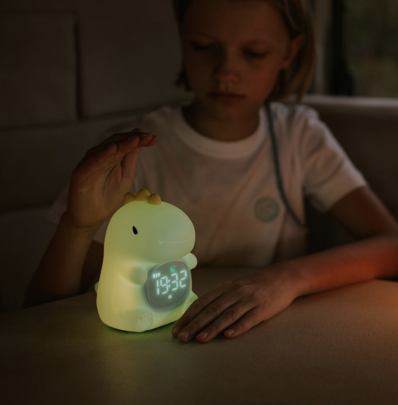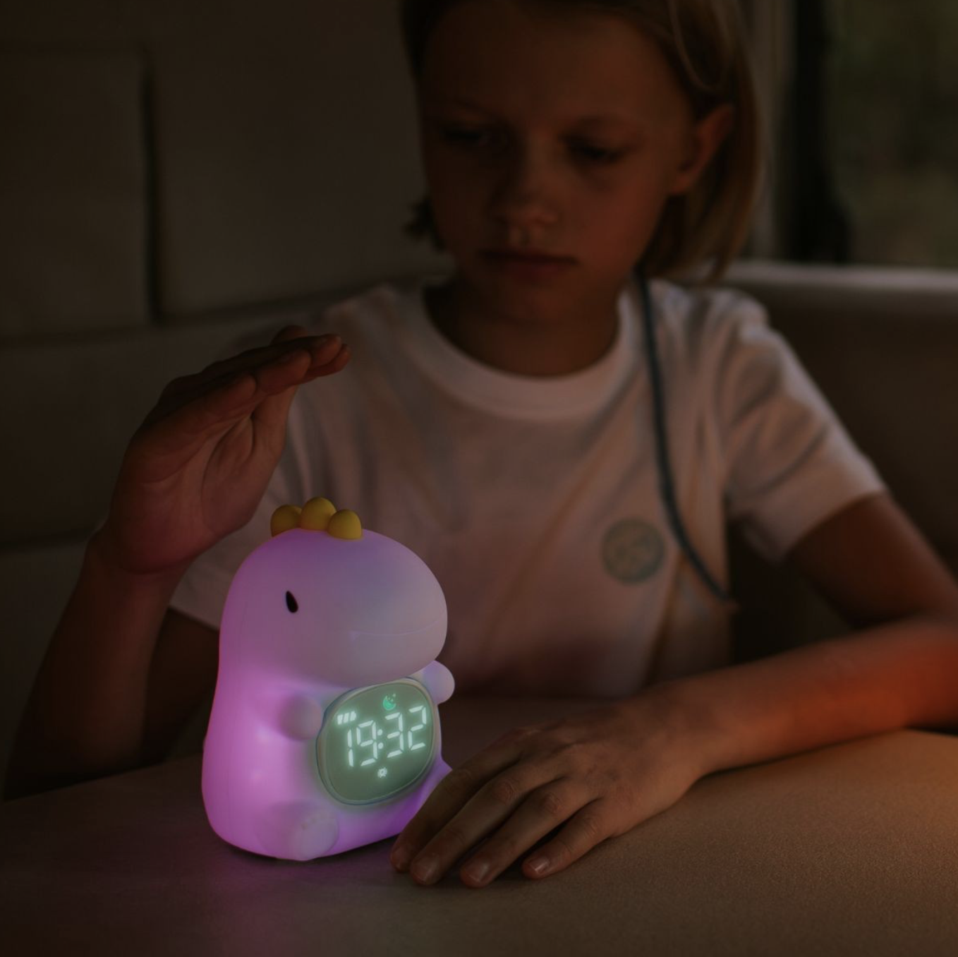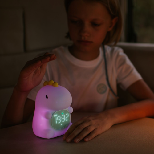 Deze schattige en functionele wekker is perfect voor op de kinderkamer. Technische specificaties Vermogen: 0,5W Materiaal: ABS + PC + siliconen Oplaadtijd: 4,5 uur Gebruikstijd: 380 uur Inbegrepen: USB-kabel