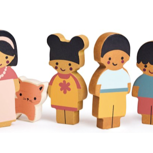 Leuk voor rollenspel , deze mooi vormgegeven familie met kat. In hout.