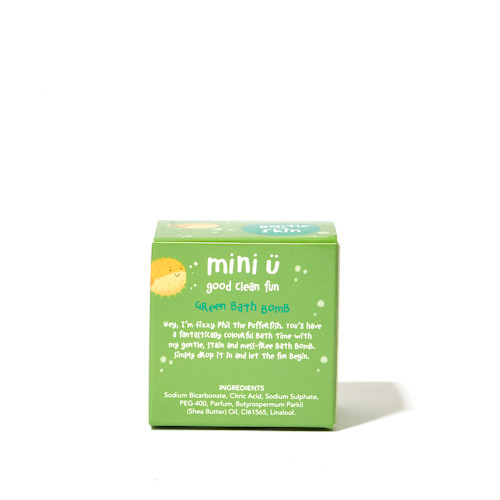 In dit doosje zit een groene bruisbal. Hij laat het water mooi groen kleuren, is zacht voor de huid en zorgt voor extra badpret.