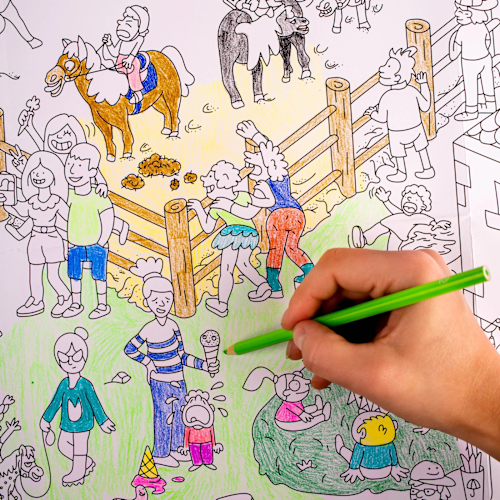 Tip: door het grote formaat kan je eenvoudig kleuren met meerdere personen tegelijkertijd! Leuke activiteit voor het ganse gezin ;-)