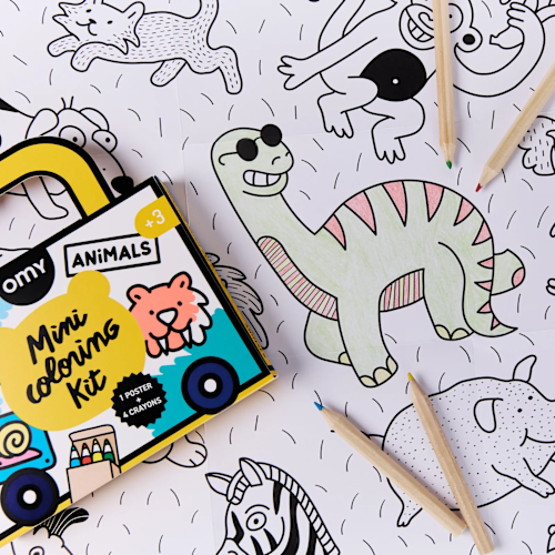 Binnenin: 4 mini waskrijtjes en grote kleurplaten, speciaal ontworpen voor kinderen van 3 tot 7 jaar.