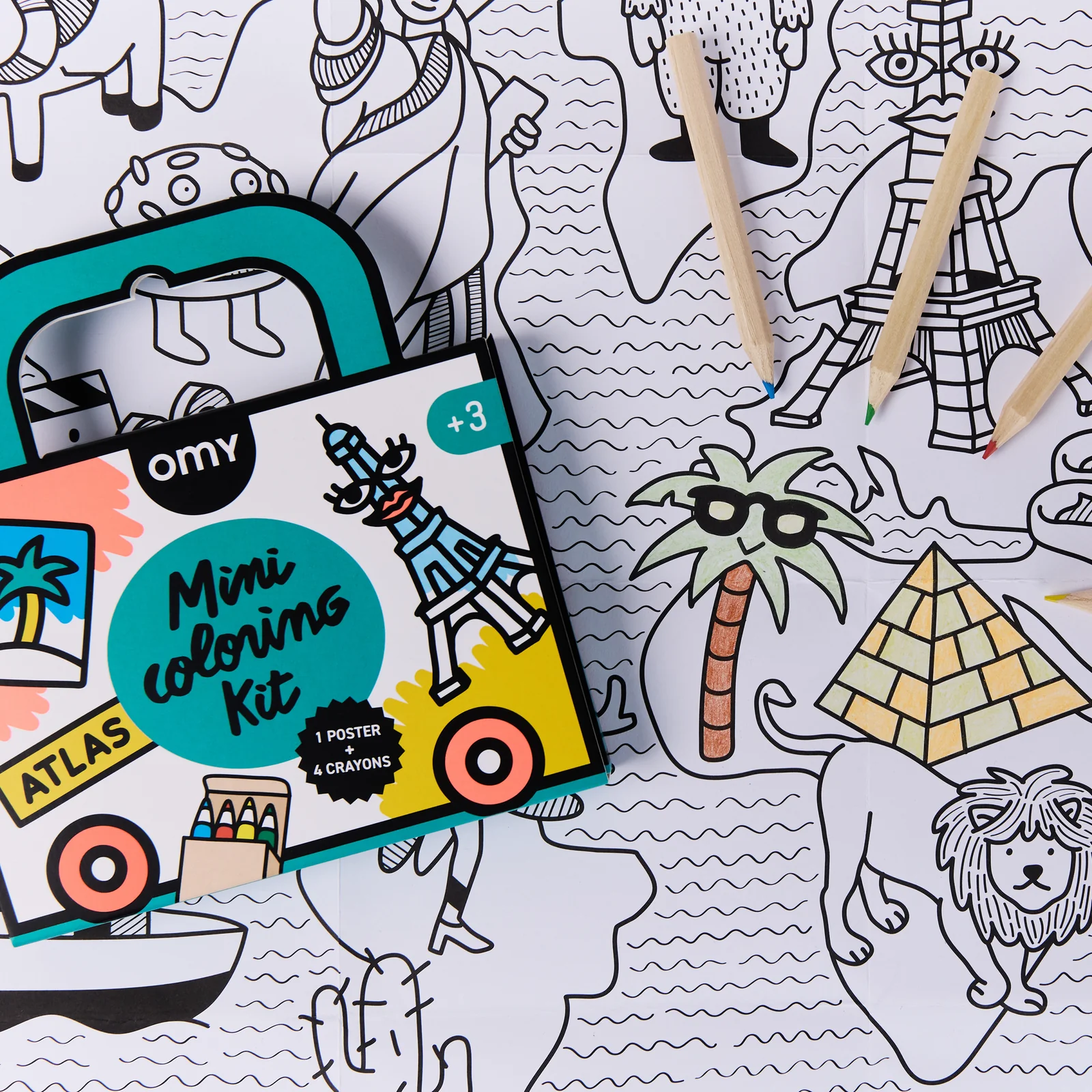 Binnenin: 4 mini waskrijtjes en grote kleurplaten, speciaal ontworpen voor kinderen van 3 tot 7 jaar.