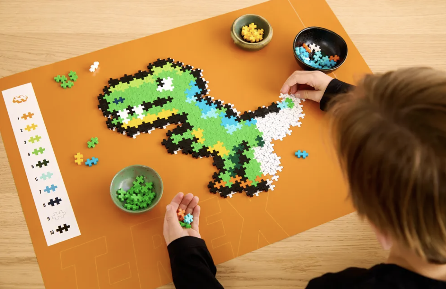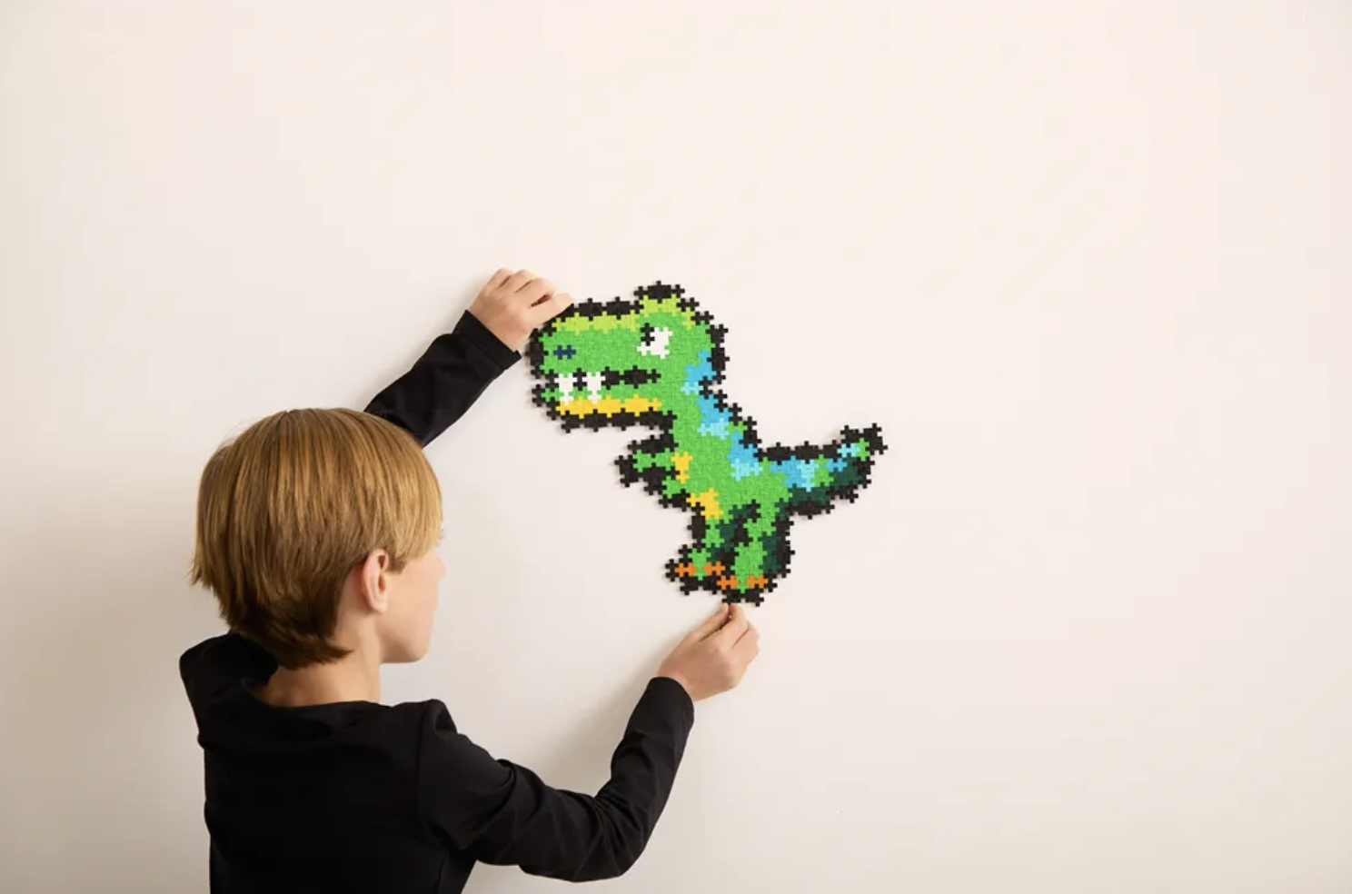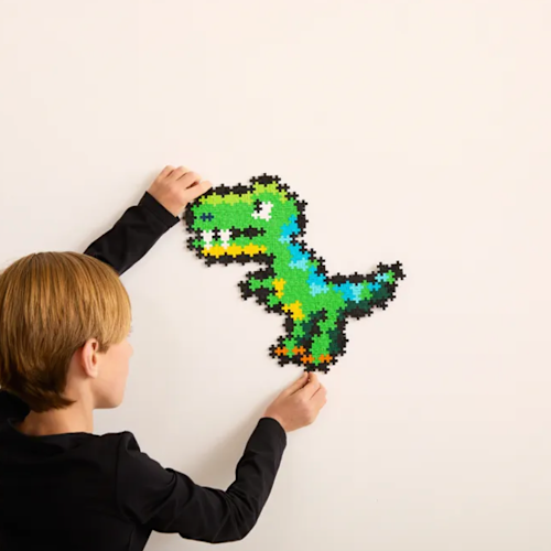 Nieuw! Ontdek de 2D puzzles met polyethyleen stukjes die je zintuigen op scherp zetten. Puzzelen op kleur was nog nooit zo spannend! Volg de tekening of puzzel vrijuit en ontwerp deze schattige dino. Meer dan een spel, ontwerp je ook decoratieve objecten die je op je kamer kan hangen... ook te wassen in wasmachine of vaatwasser. Handig toch? Valt het ook op dat we enthousiast zijn?!
