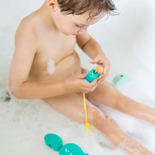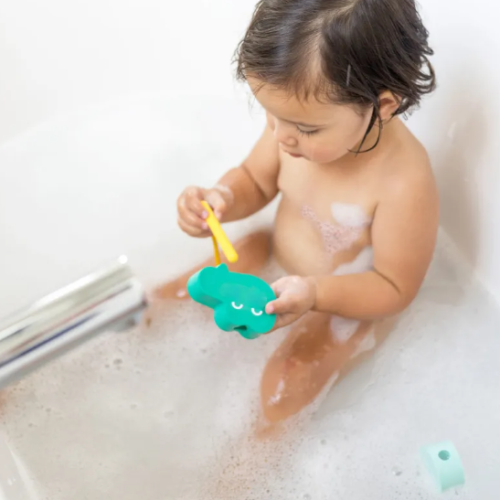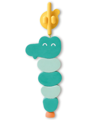 Vanaf 10 maanden kan je kleintje spelen met de grote blokken van zacht schuim die op het water drijven. Vanaf 18 maanden kan hij de kralen aan elkaar rijgen met de naald om zijn cognitieve vaardigheden te stimuleren en zijn oog-handcoördinatie te verbeteren. Gebruik de zuignap om je badkamer te versieren met de kralencreatie van je kind. Zo tover je de badkamer om in een waar speelparadijs!