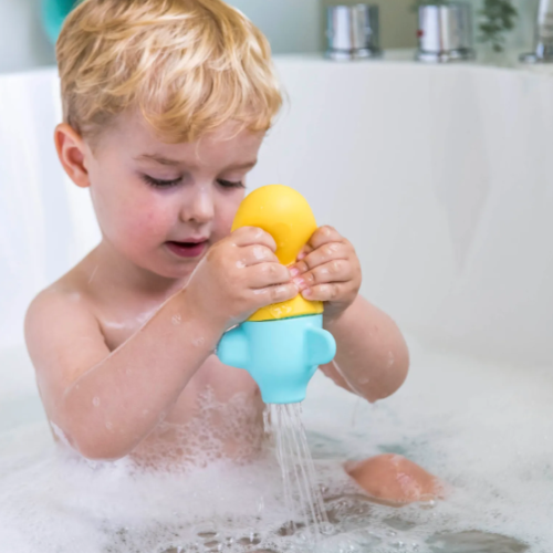 Badpret met Squeezi! Volle kracht vooruit! De Squeezi Submarine neemt je mee naar de diepte van de oceaan. Of de bodem van de badkuip. Hij kan ook door de kleinste kinderhandjes gemakkelijk worden gevuld met water. Knijp erop terwijl hij onderduikt zodat hij gevuld raakt met water, en wanneer je onderwateravontuur beëindigd is, knijp je hem weer uit zodat hij op het water blijft drijven.