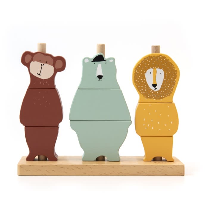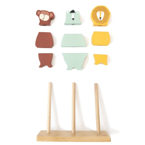 Drie dierenvrienden om eindeloos plezier mee te maken! Maak de gekste combinaties of probeer de drie dieren weer in hun oorspronkelijke vorm te puzzelen. Elk kleintje zal genieten van de combinatie van verbeeldingskracht en het testen van hun fijne motoriek bij het plaatsen van de blokken op de stapelaar. De puzzel is gemaakt van 100% FSC © gecertificeerd hout. Alle verven zijn op waterbasis en veilig voor baby's.