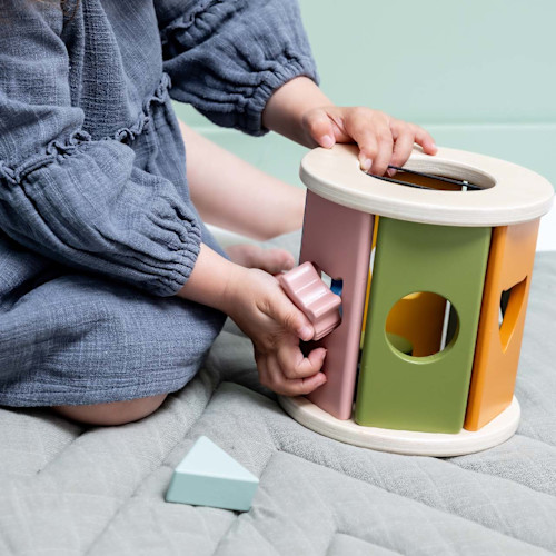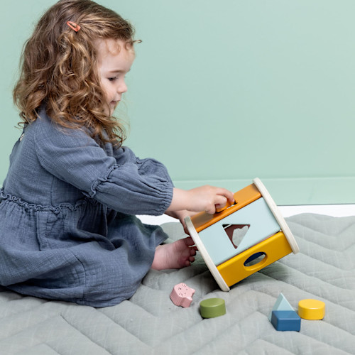 Rock-’n-roll, baby! Deze leuke, ronde vormendoos heeft aantrekkelijke kleuren, geometrische vormen en dierensnoetjes die je baby makkelijk kan vastgrijpen. Perfect om de oog-handcoördinatie en motoriek te trainen, maar ook om kennis te maken met vormen en kleuren. Begint je baby te kruipen? Dan is dit het ideale maatje! En als er even niet mee wordt gespeeld, berg je de blokken gewoon op in de rol. Gemaakt van 100% FSC®-gecertificeerd hout en niet-giftige, kindveilige verf.
