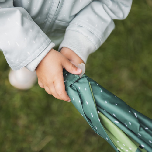 Het schuifsysteem om de paraplu te openen en te sluiten is speciaal ontworpen voor kleine handjes, zodat kinderen veilig en vlot de paraplu kunnen gebruiken. Hij heeft een sterk, kwalitatief en erg licht aluminium frame. Als de zon weer schijnt kan je met de dierenstaart de paraplu weer netjes opbergen!