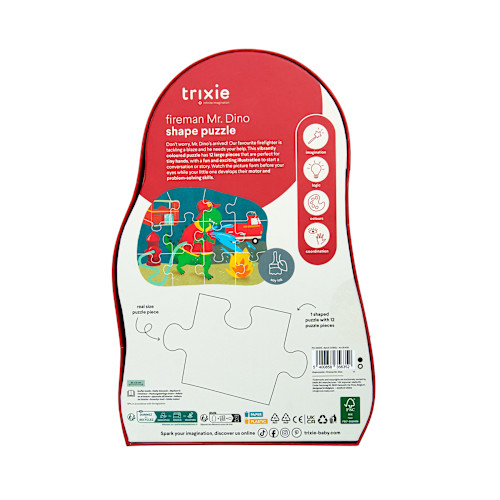 Geen nood, Mr. Dino is er! Onze favoriete brandweerman blust een brand, maar heeft jouw hulp nodig. Deze vrolijk gekleurde puzzel heeft 12 grote stukken die perfect zijn voor kleine handjes. De leuke en boeiende illustratie biedt bovendien inspiratie voor een praatje of een verhaaltje. Kijk hoe de afbeelding tot leven komt terwijl je kleintje motorische en probleemoplossende vaardigheden ontwikkelt.