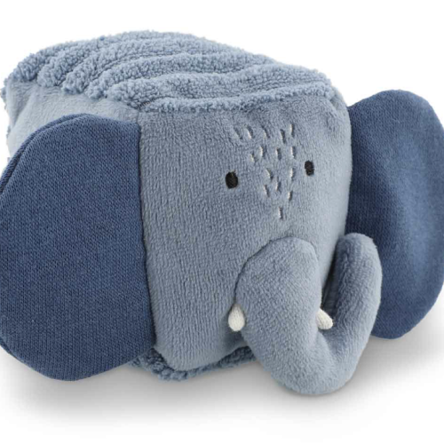 Materialen: biologisch katoen - gerecycleerd polyester - squeaker - spiegel - knisperpapier - rammelaar