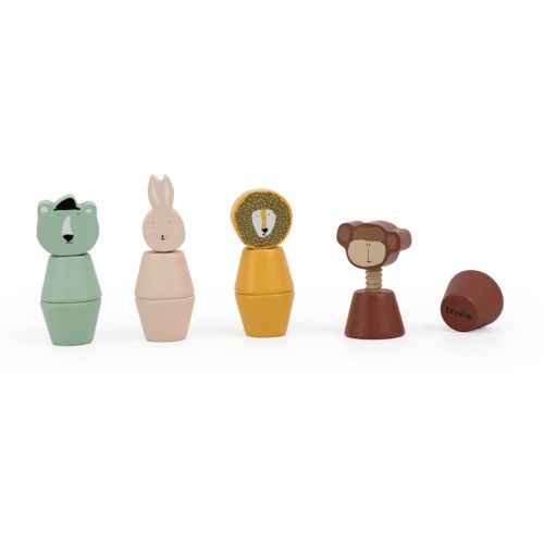 Schroeven maar! :-) Met deze leuke onderdelen leren kinderen twee elementen in elkaar draaien. Ze kunnen verschillende kleurcombinaties maken of net de juiste kleuren tot leuke dierenvrienden samen brengen. Het is een geweldige manier om de motoriek en coördinatie van kinderen spelenderwijs te verbeteren. De set bevat 4 verschillende dierenpopjes. De schroefdieren zijn gemaakt van 100% FSC © gecertificeerd hout. Alle verven zijn op waterbasis en veilig voor baby's.