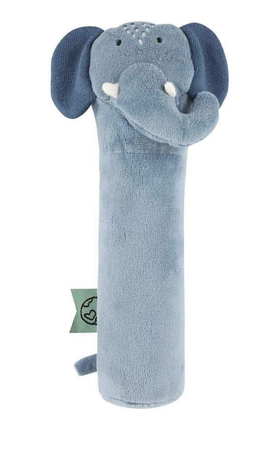 Zelfs de kleinste handjes kunnen dit kleine, zachte vriendje beetnemen. En wanneer je erin knijpt, komt er een kort, luid piepje uit.