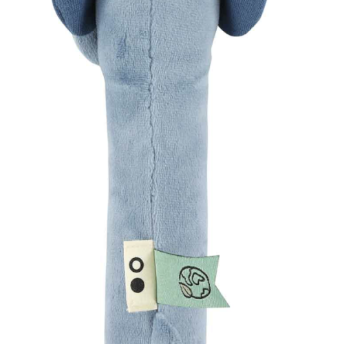 Materialen: biologisch katoen - gerecycleerd polyester - rammelaar - squeaker