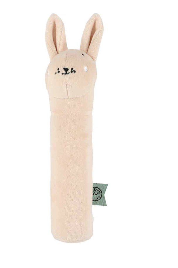 Zelfs de kleinste handjes kunnen dit kleine, zachte vriendje beetnemen. En wanneer je erin knijpt, komt er een kort, luid piepje uit.