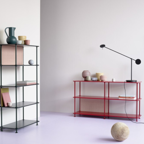 Het rek is beschikbaar met of zonder extra tussenplankje en in de kleuren Black, New White, Fjord, Black Jade en Beetroot.
