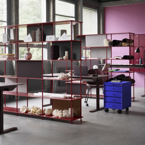 Het rek is beschikbaar met of zonder extra tussenplankje en in de kleuren Black, New White, Fjord, Black Jade en Beetroot.