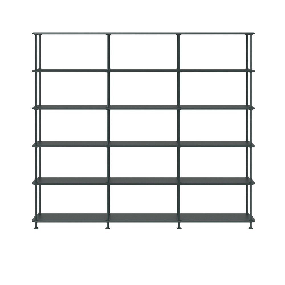 Deze opstelling van het Montana Free Shelving System is 3 elementen breed en 5 etages hoog. Een groot boekenrek met veel plaats èn met een elegante, minimalistische look.