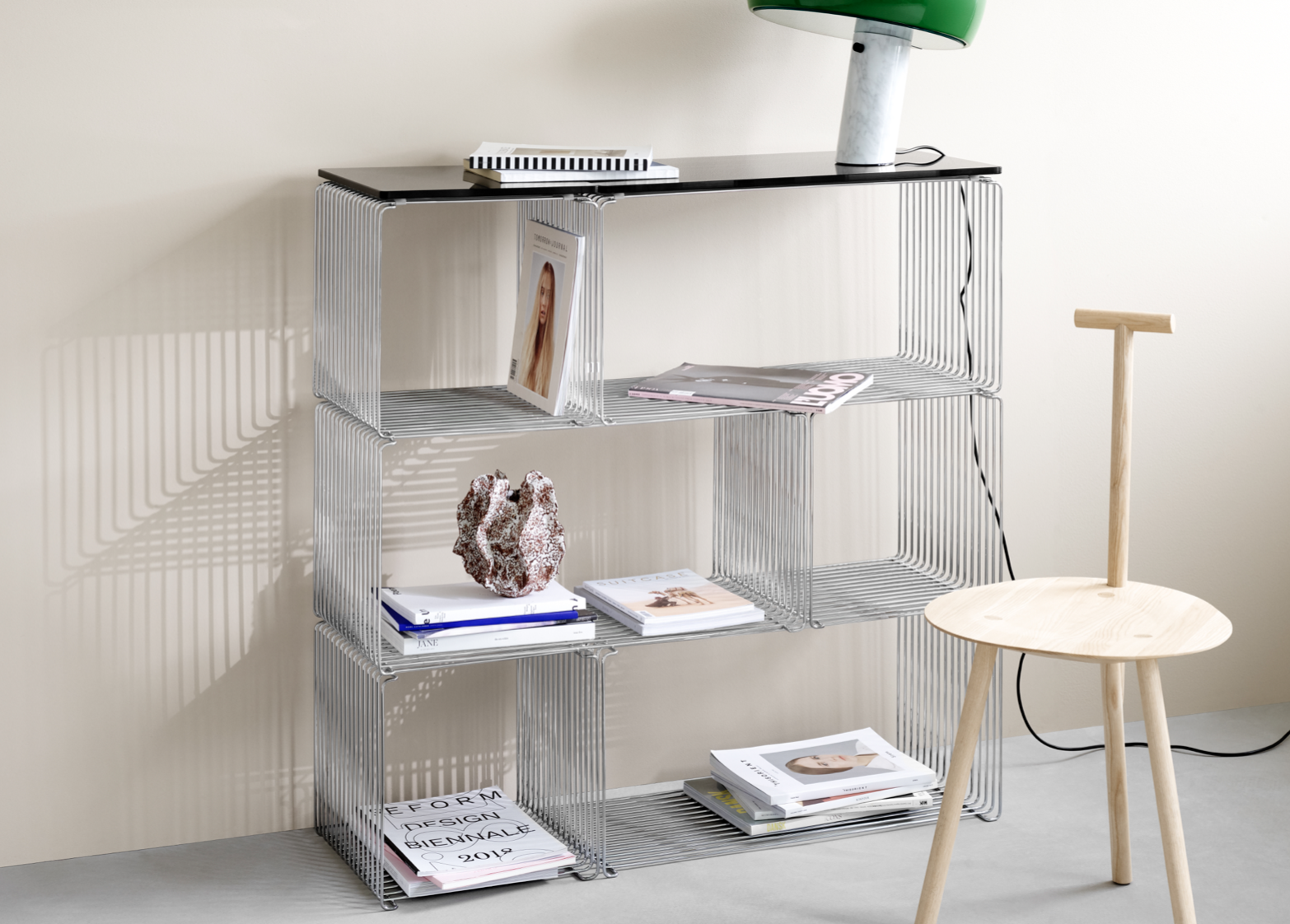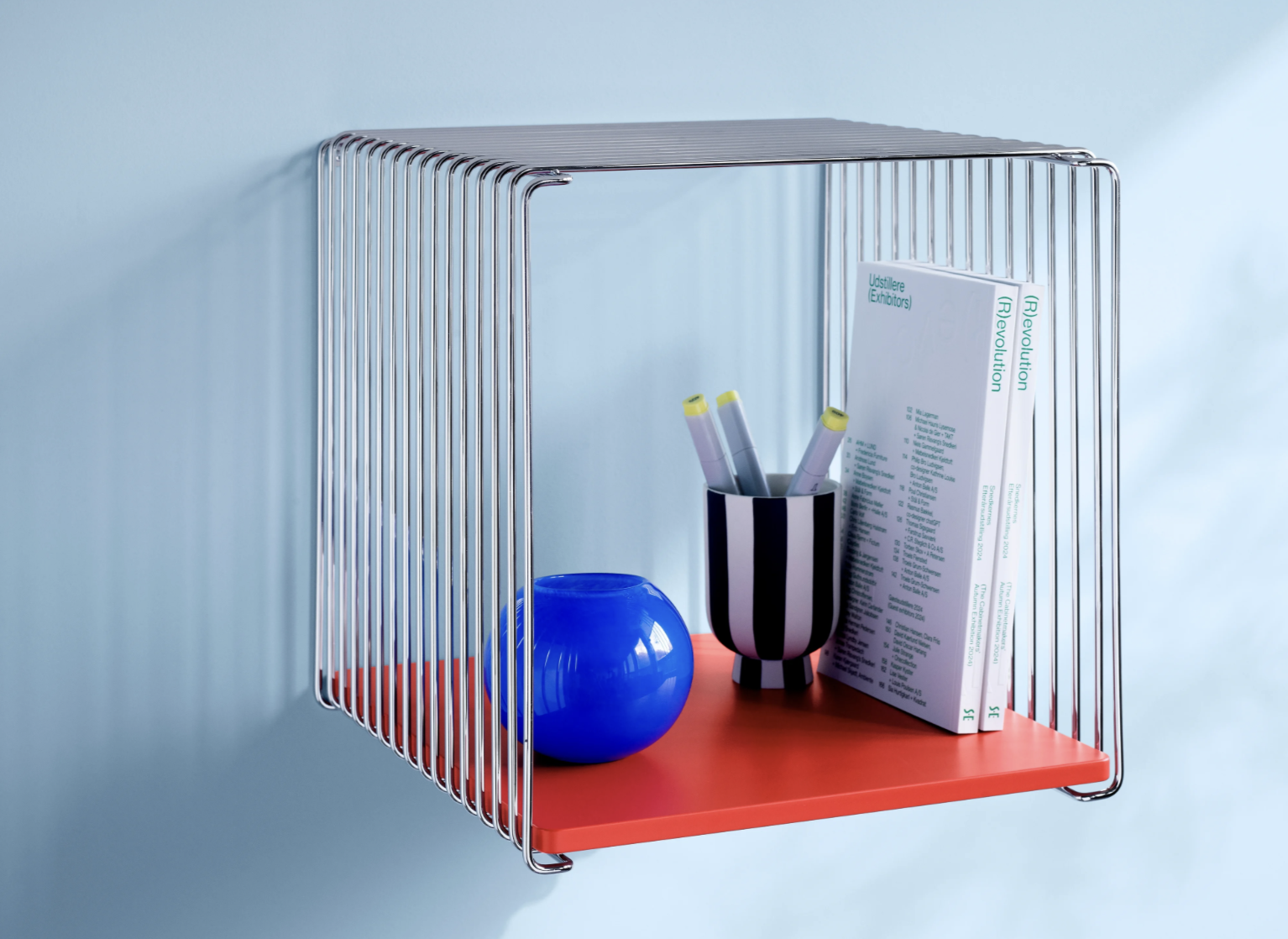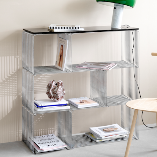 De Panton Wire modules zijn beschikbaar in 2 dieptes, in chrome of in lak, en in verschillende kleuren.