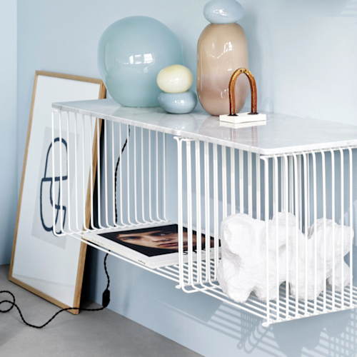 De Panton Wire modules zijn beschikbaar in 2 dieptes, in chrome of in lak, en in verschillende kleuren.