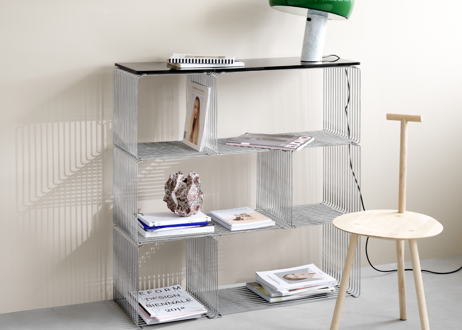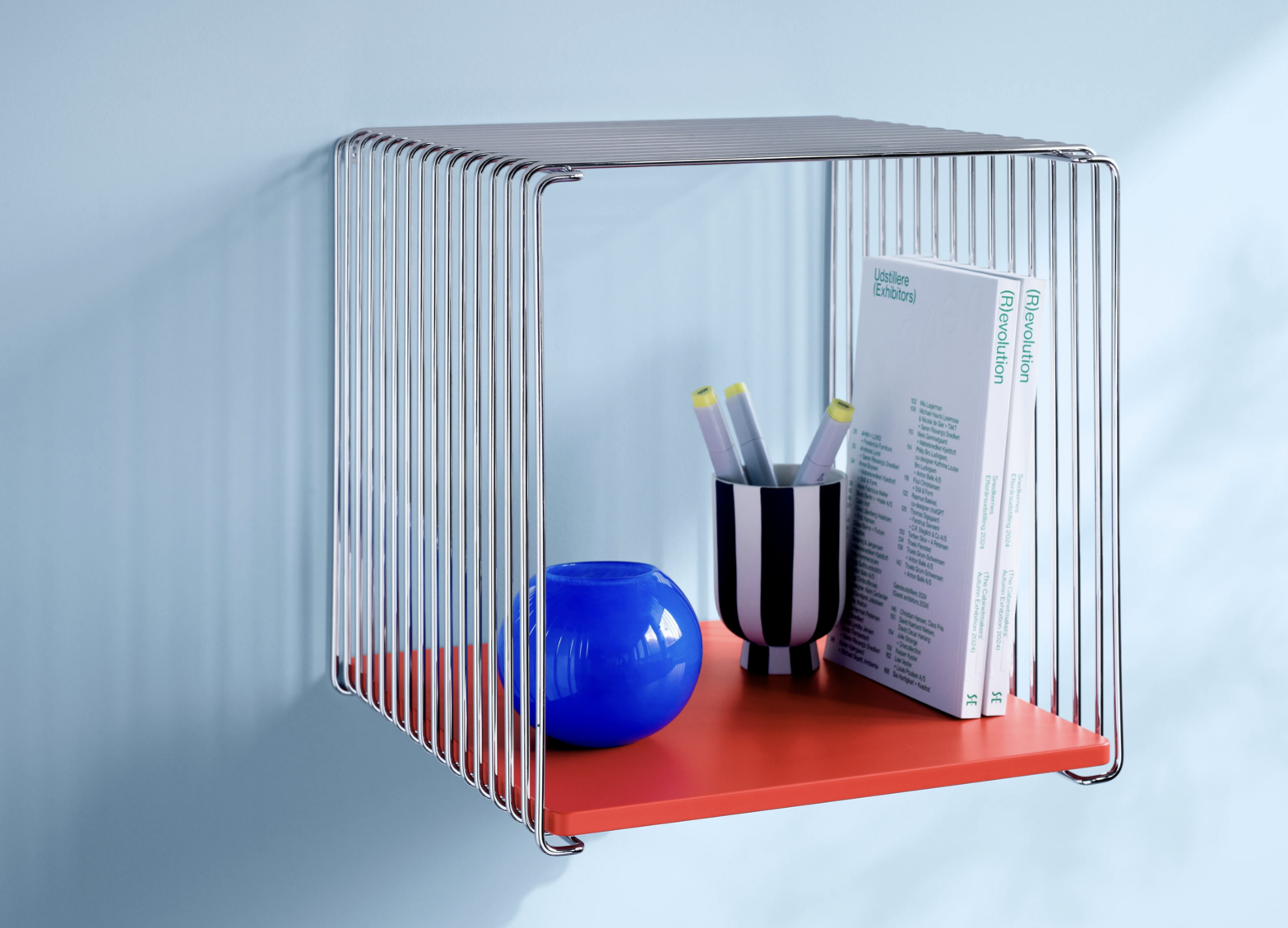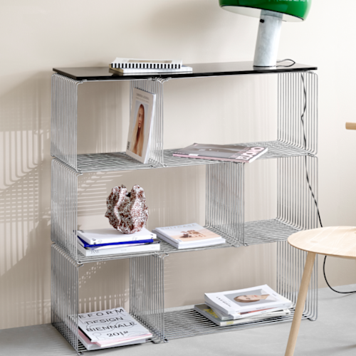 De Panton Wire modules zijn beschikbaar in 2 dieptes, in chrome of in lak, en in verschillende kleuren.