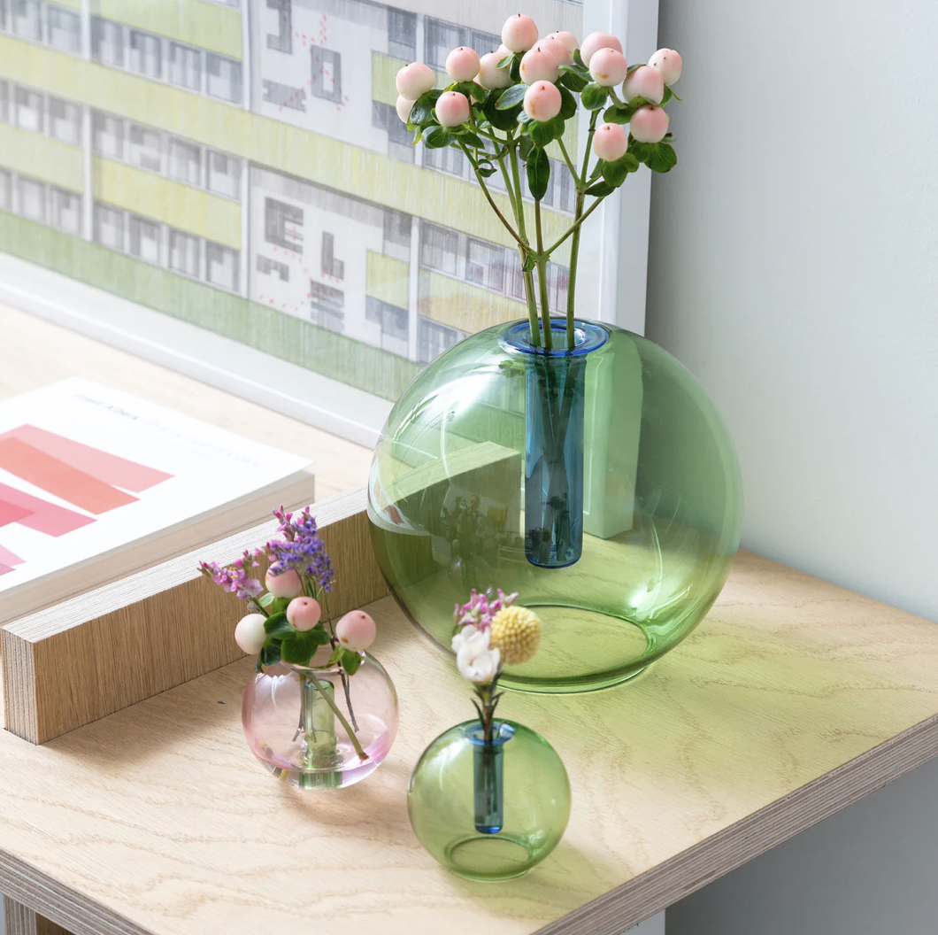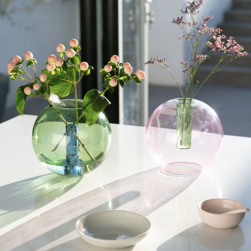 Ontdek deze mooie bubble vase in glas. Telkens in 2 tinten. Een eenvoudige of weelderig boeketje en helemaal klaar! Een verfijnde en kleurrijke eye-catcher. Alle punten voor sfeer en gezelligheid?