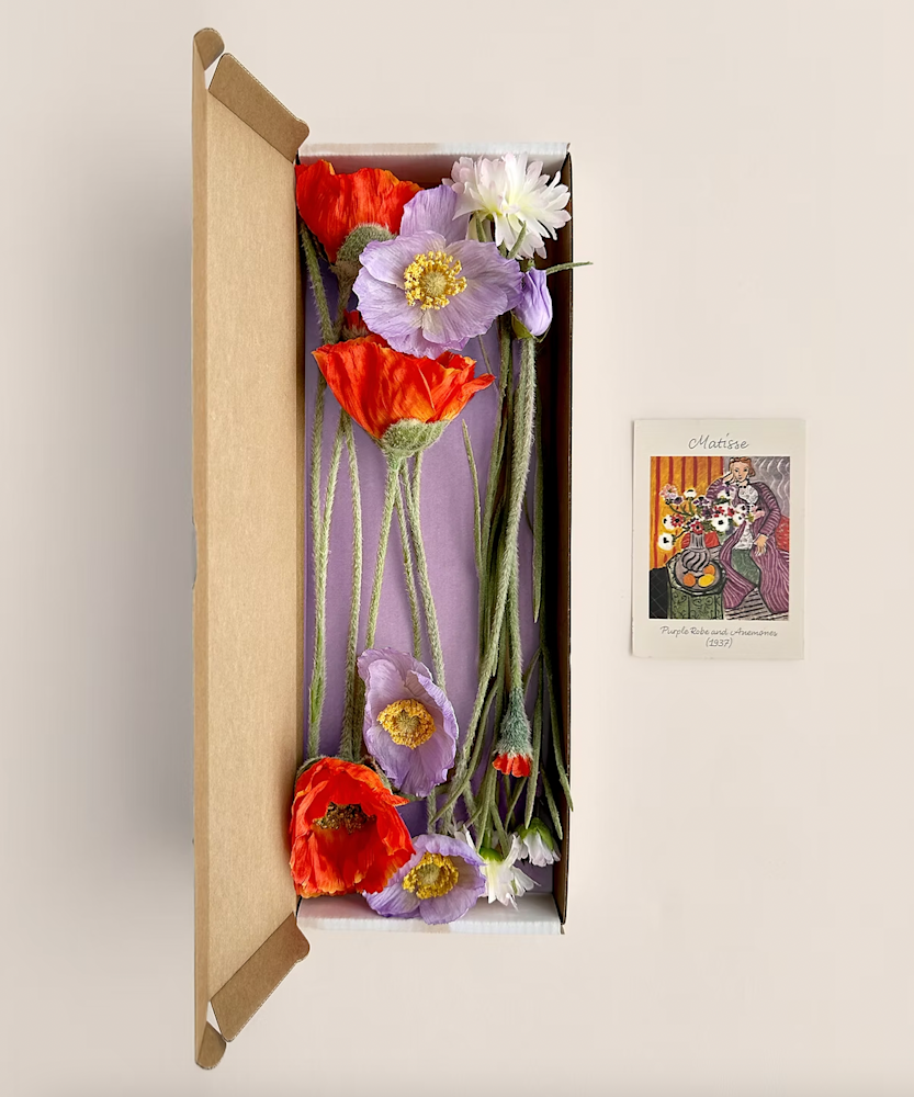 Deze zijden bloemen stralen het hele jaar door schoonheid uit. Creëer je eigen kunstwerk met dit boeket, geïnspireerd op een van 's werelds grootste kunstenaars: Henri Matisse. Elke bloem is perfect afgestemd op de Walleaf vazen. Zo heb je altijd iets moois om mee te decoreren. De perfecte manier om je huis te verfraaien!