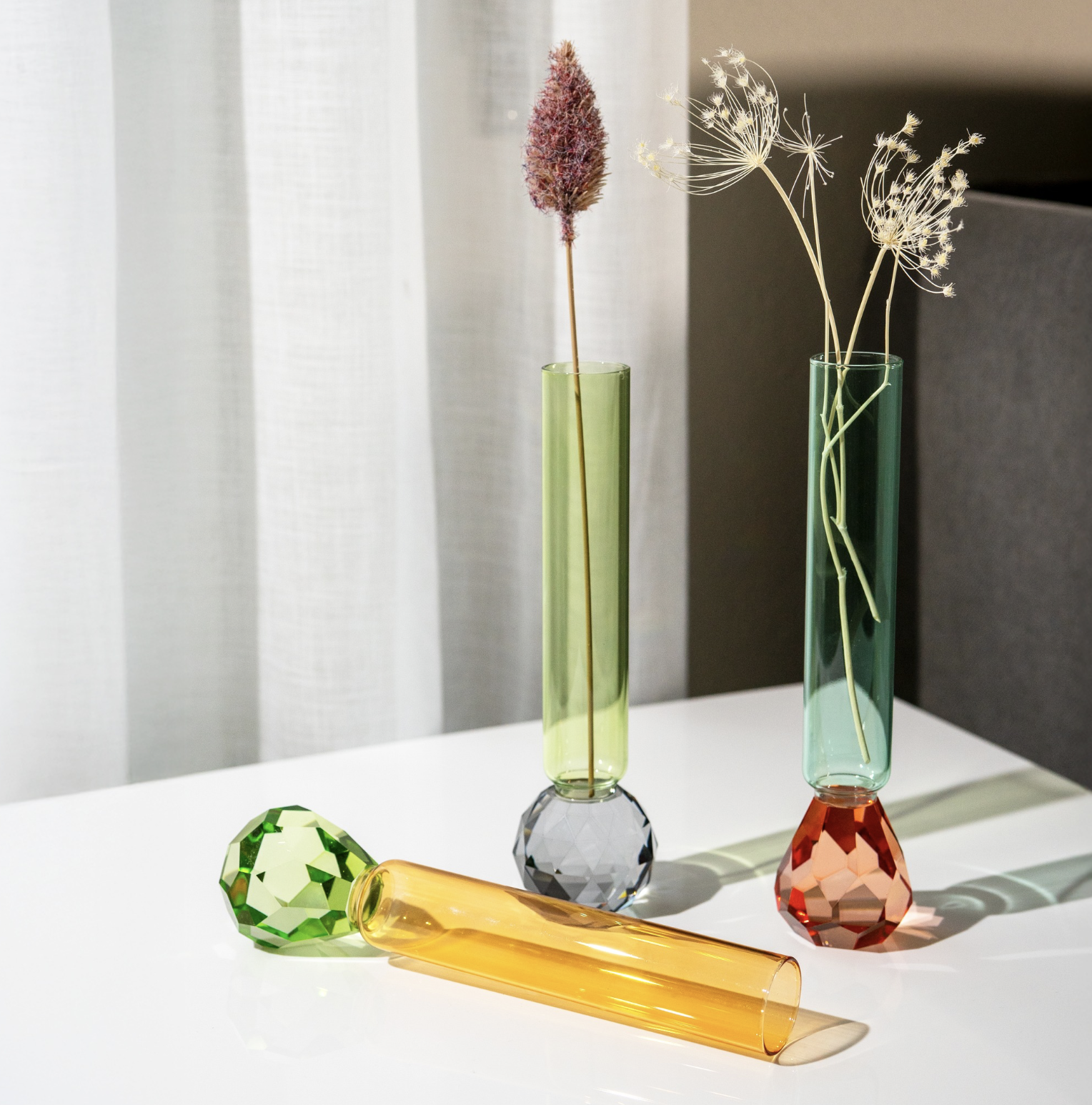Welkom aan deze newbie, WD Lifestyle! De mooiste tableware: verfijnd, kleurrijk en tot in de details afgewerkt. Deze elegante glazen vaas fleurt je leefruimte onmiddellijk op dankzij de warme kleuren en diamanten look aan de basis.