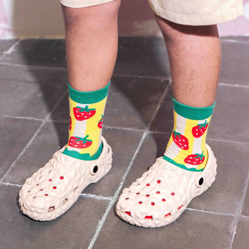Ontdek de gekke sokken van Eat My Socks. Kleurrijk, zacht en speels. 100% verrassend dus een ideale WOW factor als cadeautje. Eigenschappen Samenstelling: 68.4% katoen, 28.9% polyester, 2.7% elastane Leeftijd: van 5 tot 10 jaar