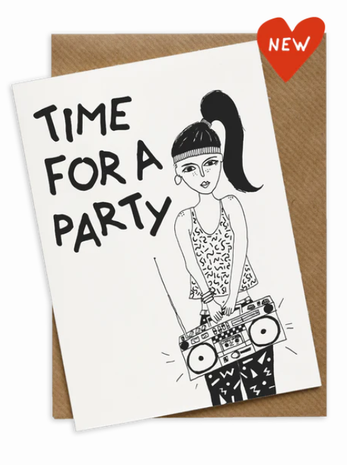 Wenskaart - Time for a party boombox girl
