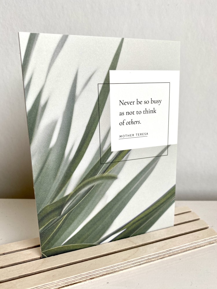 Hang de verschillende kaarten op een mooie plek in huis, als zichtbare reminder. Ervaar de kracht van de herhaling. Of verstuur een kaart, omdat je weet dat iemand deze gedachte goed kan gebruiken.