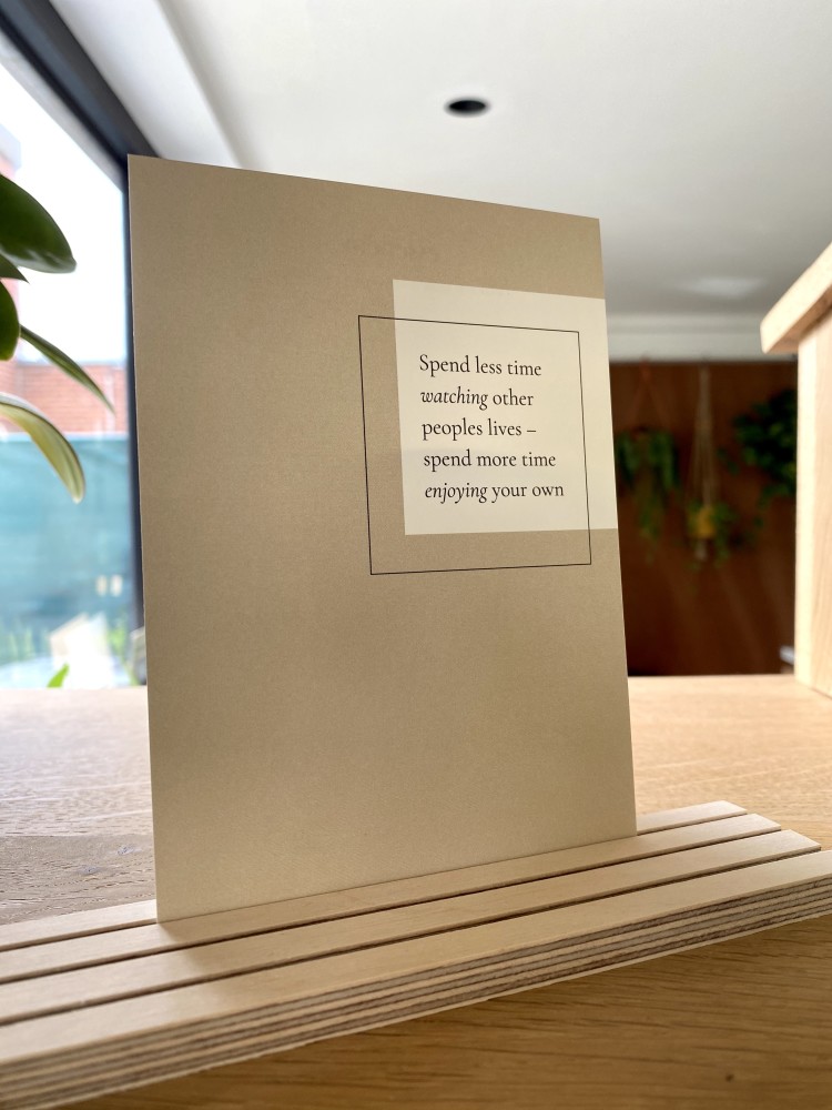 Hang de verschillende kaarten op een mooie plek in huis, als zichtbare reminder. Ervaar de kracht van de herhaling. Of verstuur een kaart, omdat je weet dat iemand deze gedachte goed kan gebruiken.