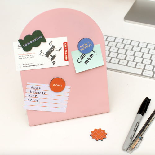 Dit leuke magneetbord met ingebouwde standaard houdt je bureau georganiseerd.