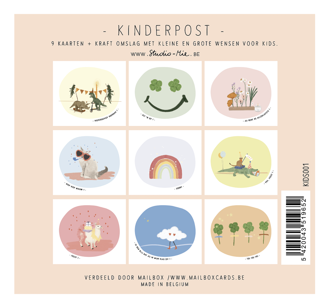 Box met 9 kaartjes (en envelop). Met verschillende thema's voor kleine en grote wensen.