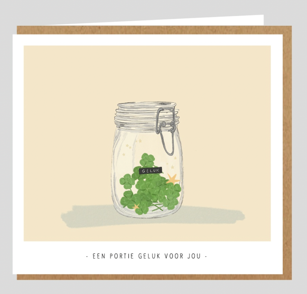 Dubbele kaart op 480 gr viltkarton Binnen postformaat: 12.5 op 14 cm Met omslag.