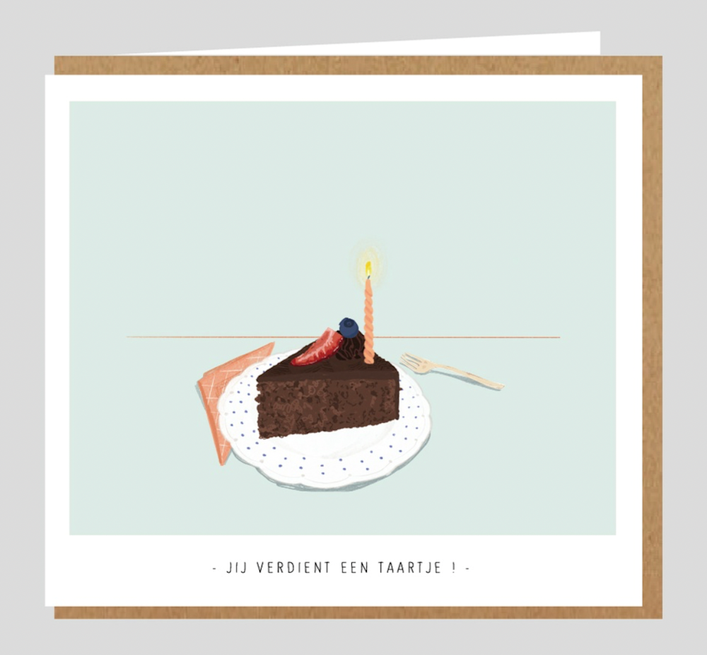 Dubbele kaart op 480 gr viltkarton Binnen postformaat: 12.5 op 14 cm Met omslag.