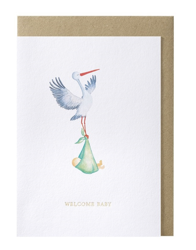 Dubbele Wenskaart - Ooievaar Welcome Baby