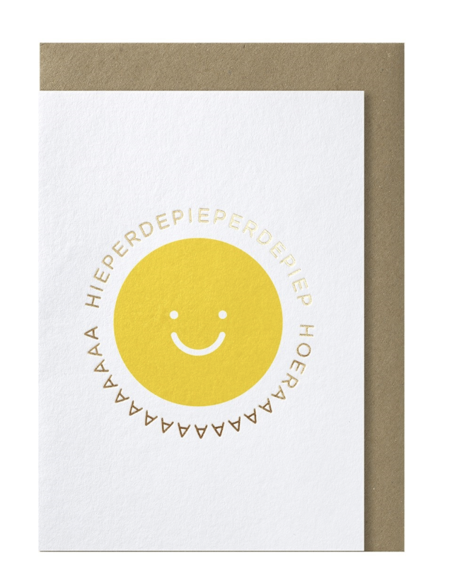 Dubbele Wenskaart - Smiley Zon Hoera