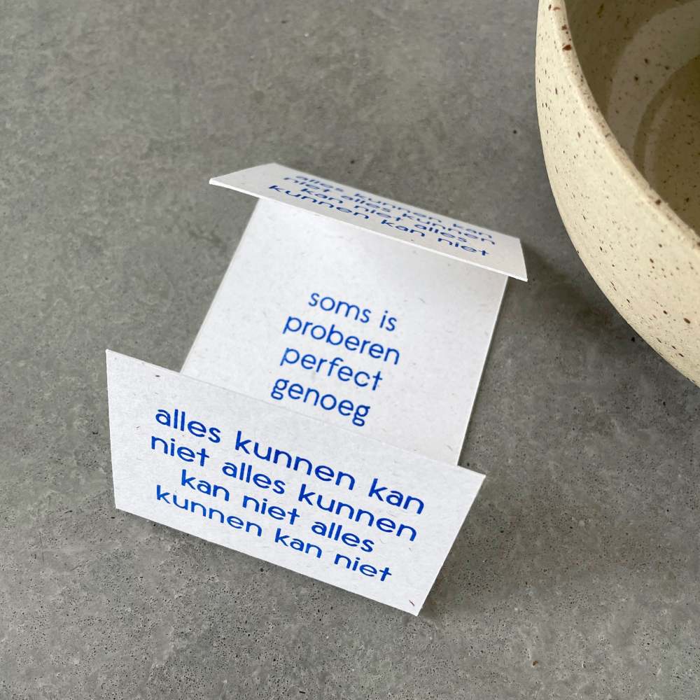 Met de hand gestempeld op stevig 350 gram papier met vezel.