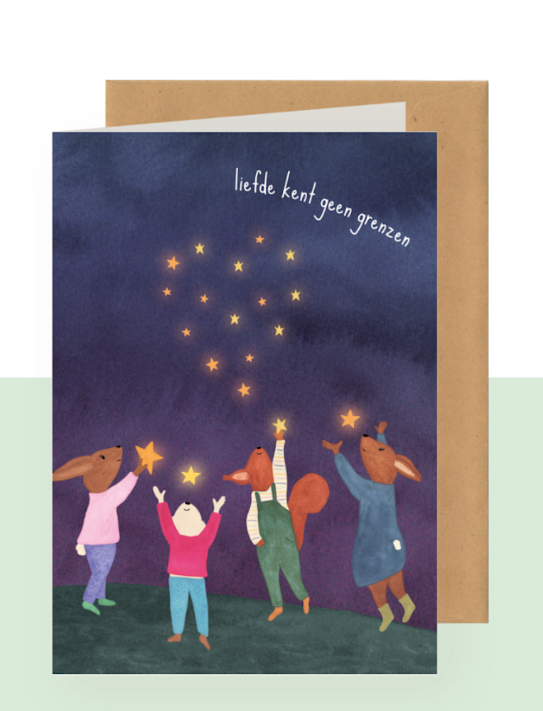 Deze troostkaart “Liefde kent geen grenzen” herinnert eraan dat verbondenheid niet ophoudt bij afscheid.