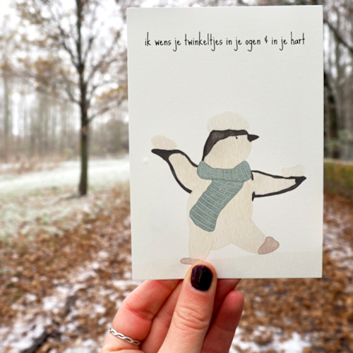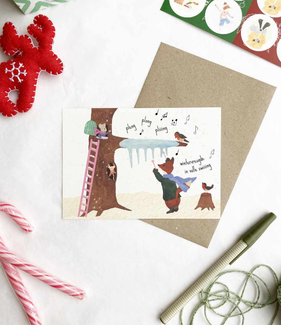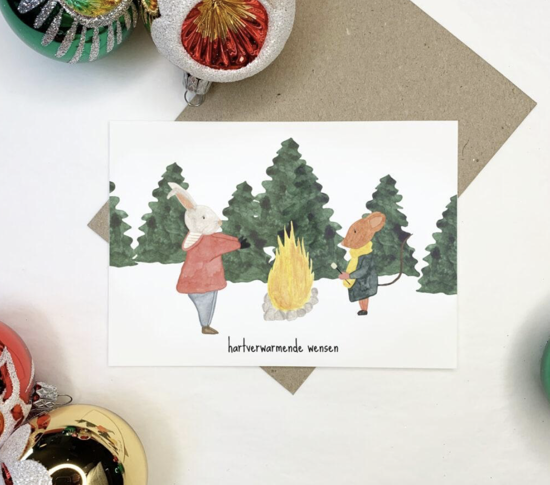 Op de blanco achterzijde van iedere kaart vind je een kleine illustratie terug met een knipoog naar de voorzijde. Verspreid de warmte, verstuur een kaartje.