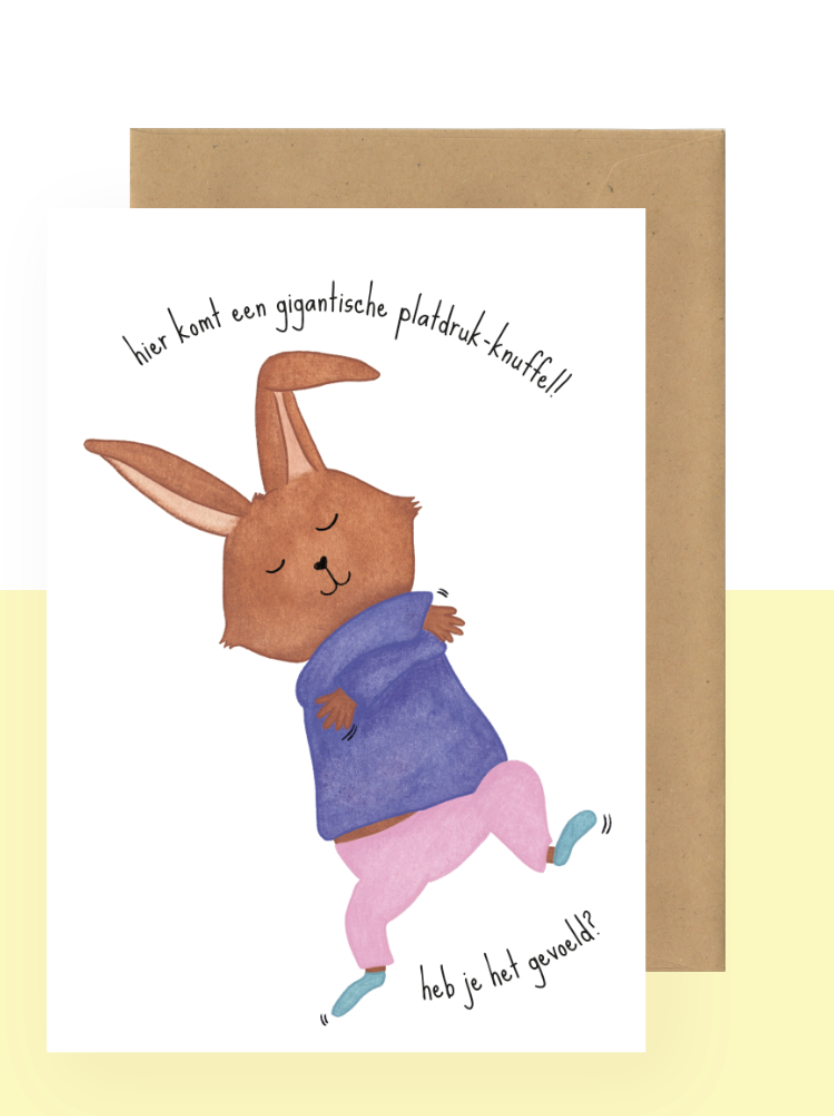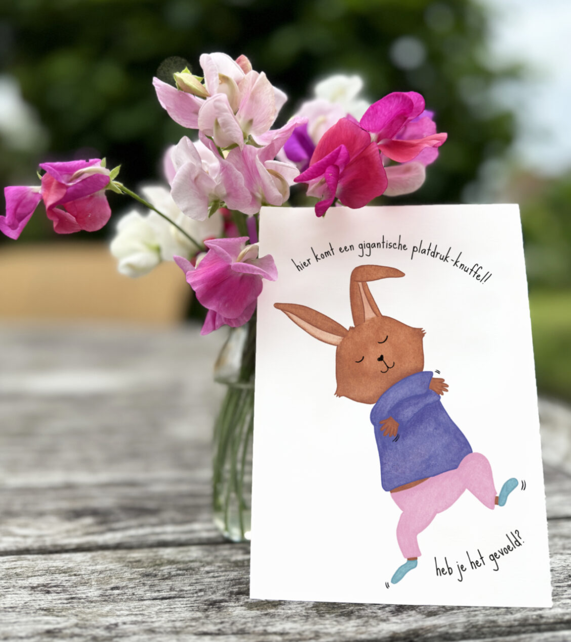 Deze kaart probeert precies dat te doen: een knuffel, recht uit het hart, geperst tussen papier maar met alle liefde van de wereld erin.