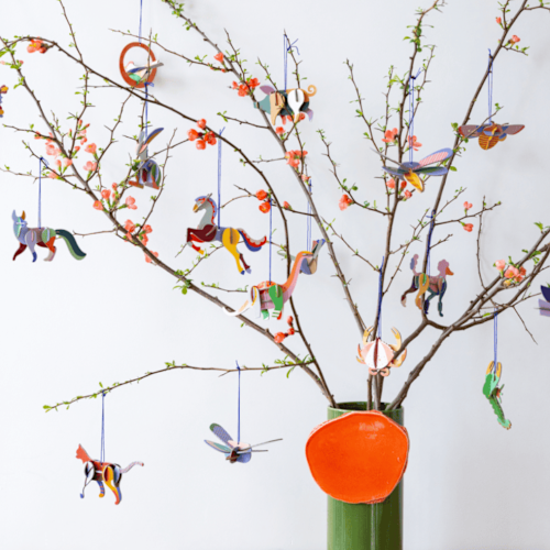 Een lief ornamentje dat je gemakkelijk in elkaar zet en vervolgens ophangt in een plant, een kerstboom, aan een lamp of waar je maar wilt. Een kleine talisman die een perfect cadeautje is voor een vriend of voor jezelf.