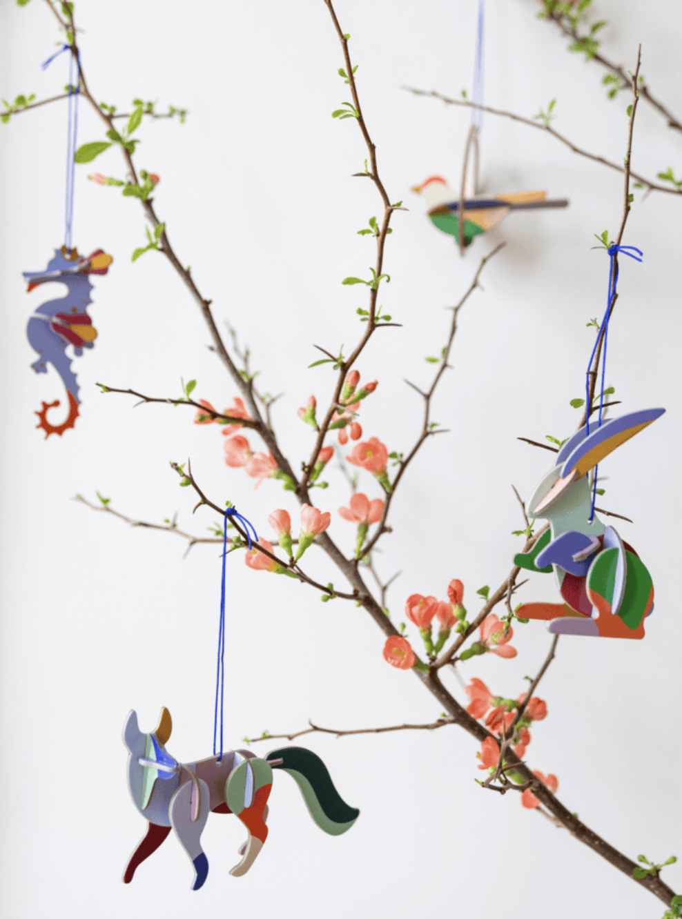 Een lief ornamentje dat je gemakkelijk in elkaar zet en vervolgens ophangt in een plant, een kerstboom, aan een lamp of waar je maar wilt. Een kleine talisman die een perfect cadeautje is voor een vriend of voor jezelf.