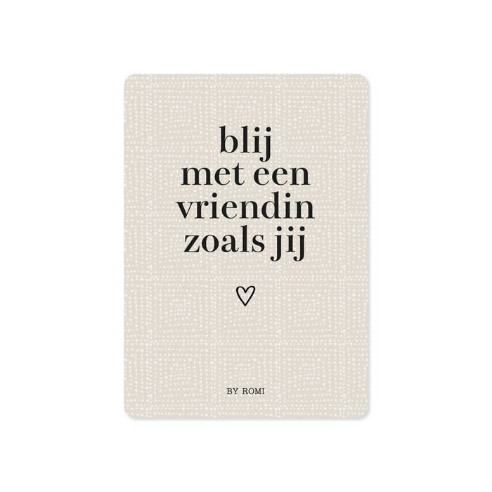 Deze wenskaart van By Romi is voorzien van afgeronde hoeken en wordt geleverd inclusief witte envelop. Afmeting kaart: 10,5 x 14,8 cm
